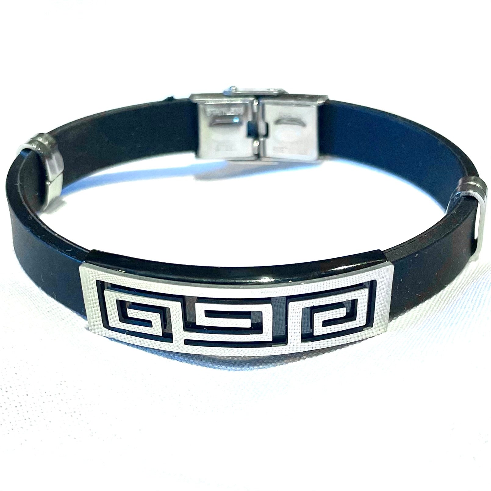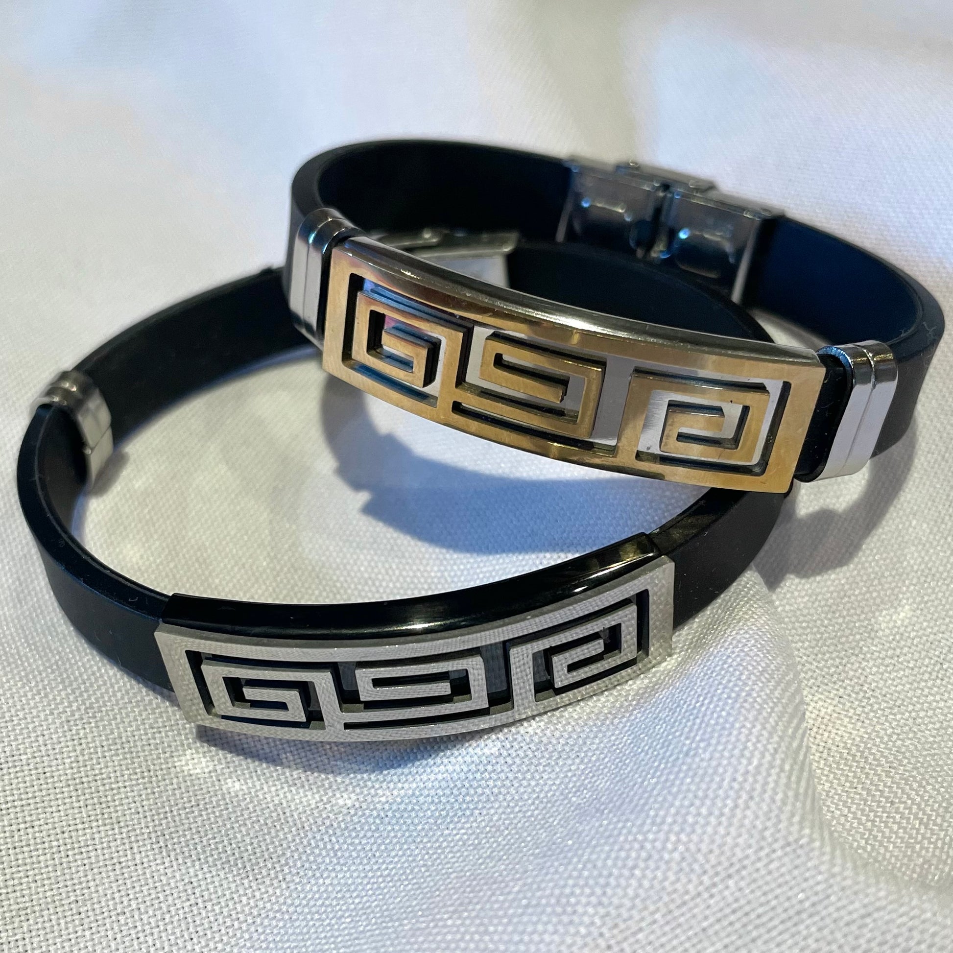 This men's bracelet featuring the iconic Greek Key is a stylish and durable accessory. The silicone strap adds comfort and flexibility, while the stainless steel design exudes a classic and high-quality look. Perfect for any occasion, this bracelet is a timeless addition to any wardrobe.