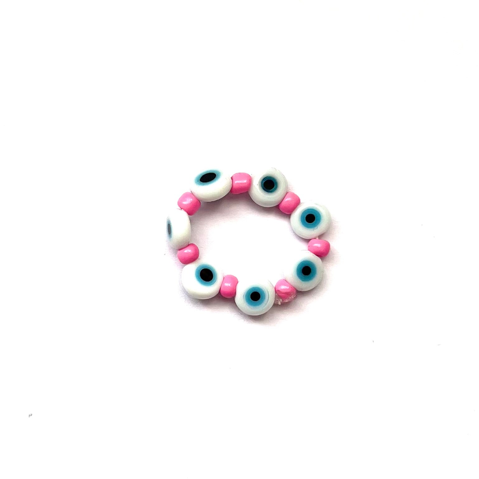 Protect yourself from bad vibes with this playful beaded ring featuring multi blue evil eyes. The elastic band ensures comfort and flexibility for everyday wear.