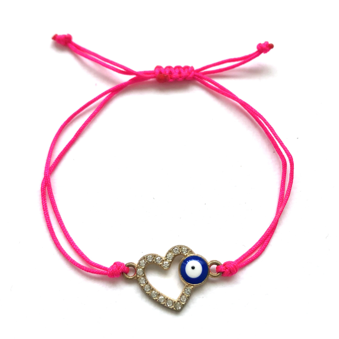 Add a touch of sparkle and protection to your style with our Bracelet with Diamanté Heart & Evil Eye. The delicate design features a glistening heart and an evil eye charm, perfect for warding off negative energy. Embrace both fashion and luck with this unique accessory.