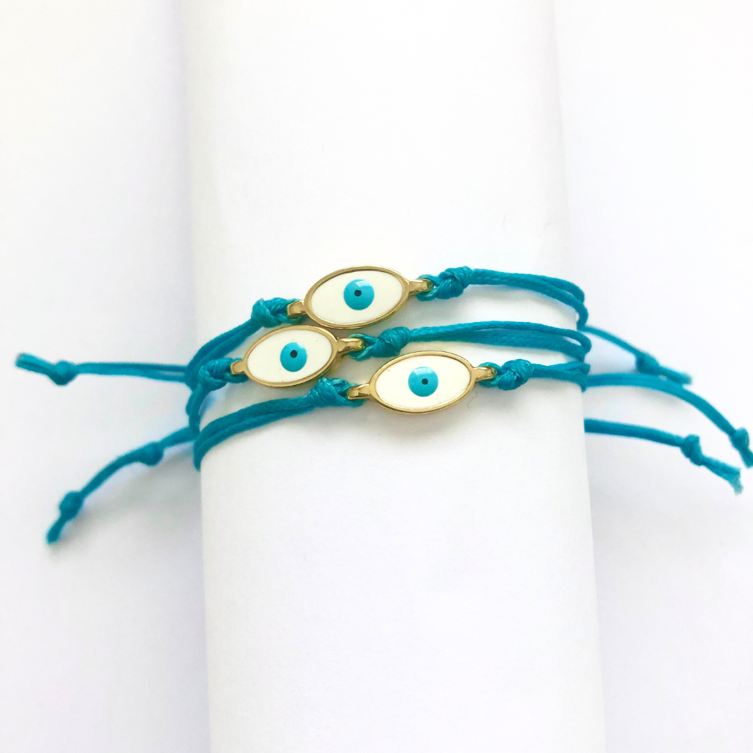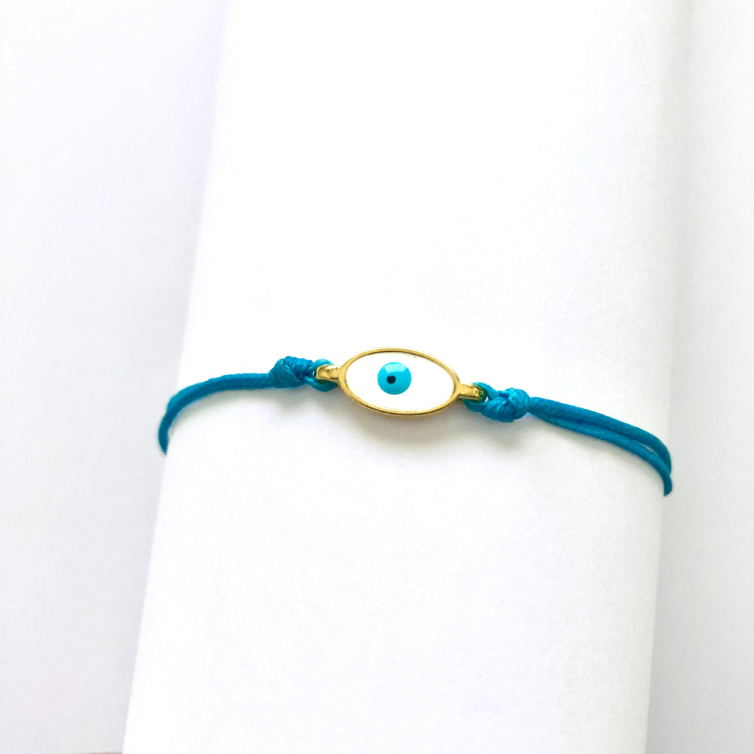 Protect yourself in style with this 24k gold plated bracelet featuring an oval evil eye charm with enamel detail. Keep negative energy at bay while adding a touch of glamour to your everyday look. No bad vibes here!