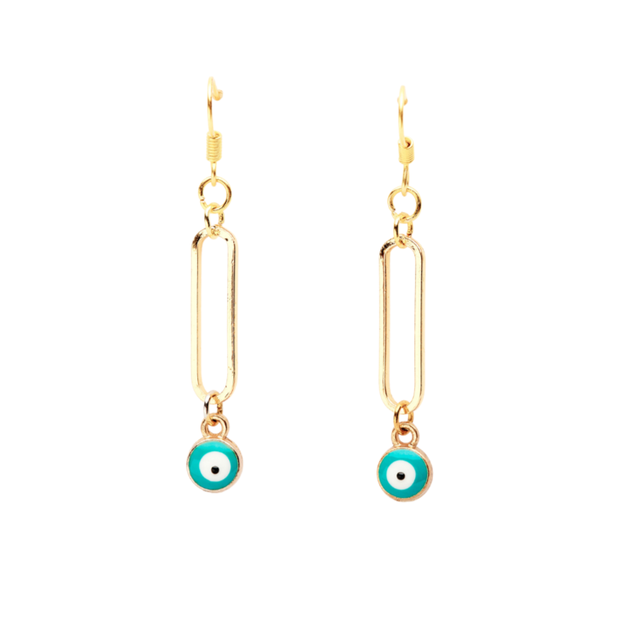 Introducing Christina, our eye-catching paperclip pendant featuring a classic round turquoise evil eye set on a stainless steel hook. This piece of jewellery is perfect for adding a timeless yet modern touch to any look.