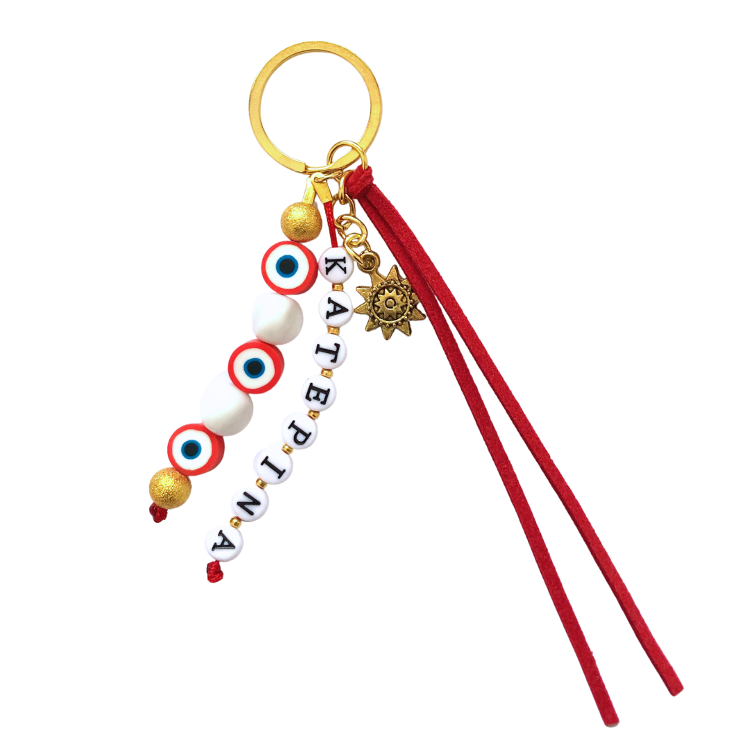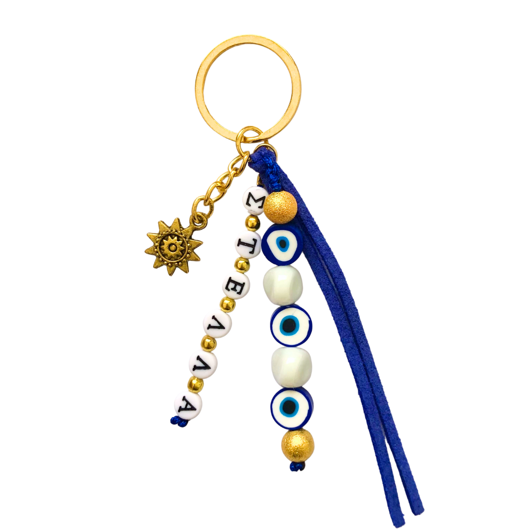 Carry a bit of summer with you wherever you go with this Evil Eye and Sun keyring.